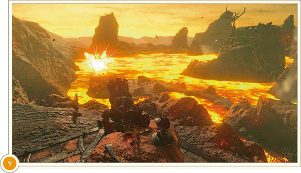 Lorsqu’il se prépare à envoyer sa boule de feu, le monstre génère un champ gravitationnel qui attire les petits objets alentour ; lancez une bombe à ce moment précis : une fois qu’elle a pénétré la barrière d’énergie, provoquez sa détonation. Le choc étourdit votre adversaire et le prive de son aura protectrice – profitez-en pour vous ruer sur lui et lui infliger vos plus puissants combos.