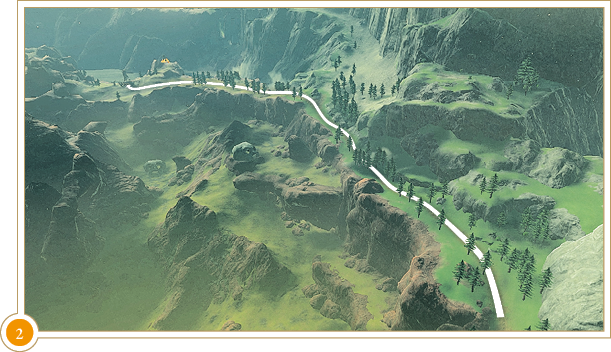 Depuis le sommet de la tour, élancez-vous vers le nord-est et planez jusqu’à l’entrée des Bois perdus, un passage obligé pour accéder à la Forêt Korogu, votre prochaine destination.