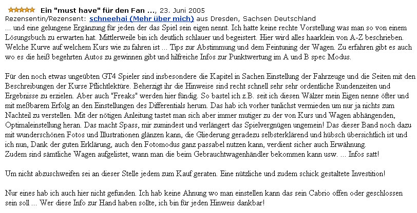 Hinter diesem ultimativen Referenzbuch steckt das bisher größte Team, das jemals an einem Piggyback-Guide gearbeitet hat: Profi-Fahrer, Fachredakteure, Maschinenbauingenieure sowie Tausende von Gran-Turismo®-4-Spielern, die mittels der extra dafür entwickelten Online-Liga ihre Spielerfahrungen, Rekordzeiten und Fahrtechniken beisteuerten. Nach sorgfältiger Auswertung der Daten wurde dem Buch der letzte Feinschliff verpasst. In Ihren Händen halten Sie nun das Ergebnis von geschätzten 40.000 Spielstunden innerhalb eines Zeitraums von sechs Monaten!