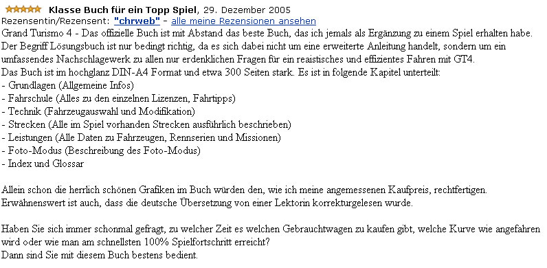 Alle Beispielseiten aus dem offiziellen Buch zu Gran Turismo® 4 zum kompakten Download.