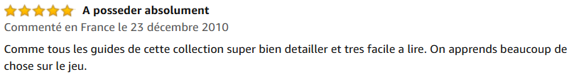 « Comme tous les guides de cette collection super bien detaillé et très facile a lire. On apprend beaucoup de choses sur le jeu. »