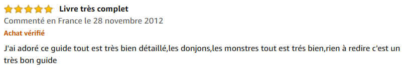 « J’ai adoré ce guide tout est très bien détaillé, les donjons, les monstres tout est très bien, rien à redire c’est un très bon guide. »