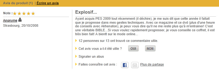 Commentaires clients Fnac, 20/10/2008